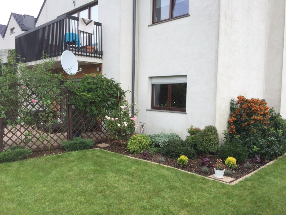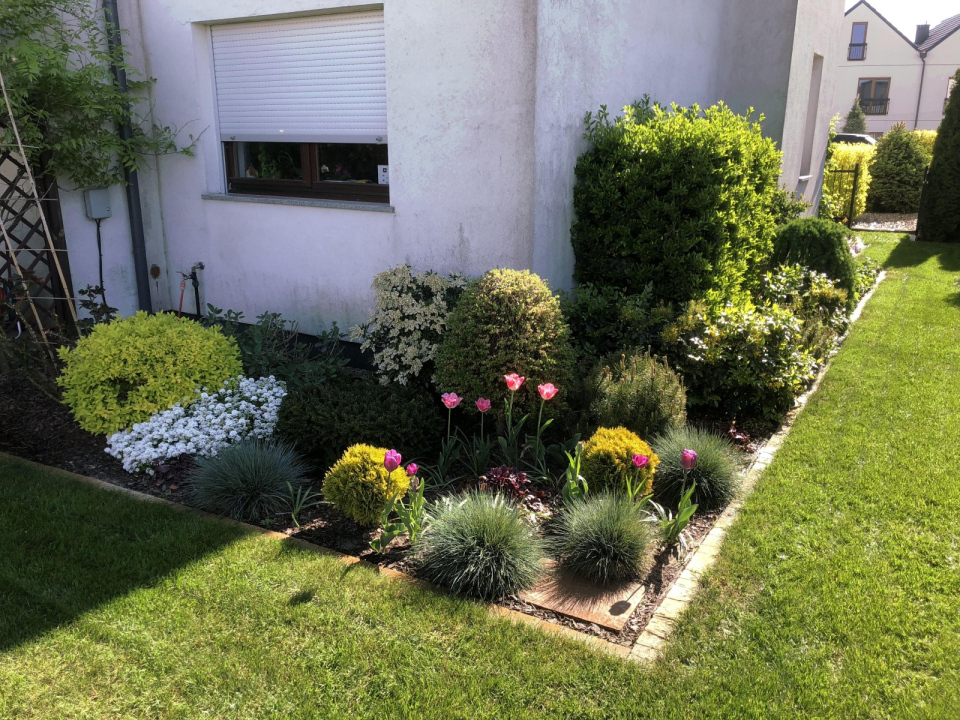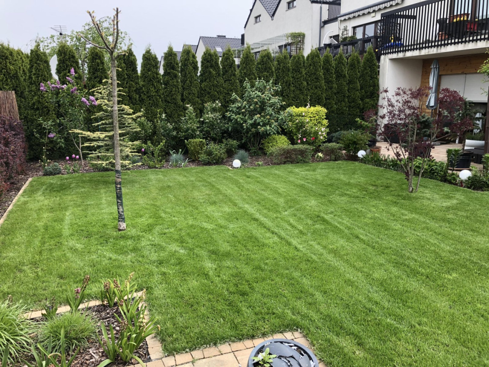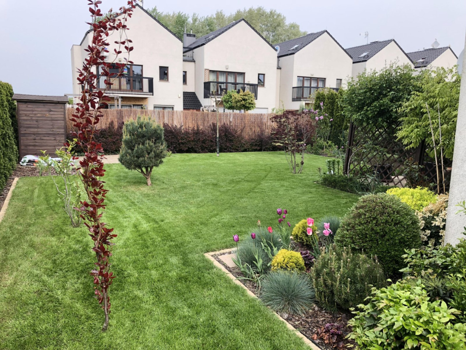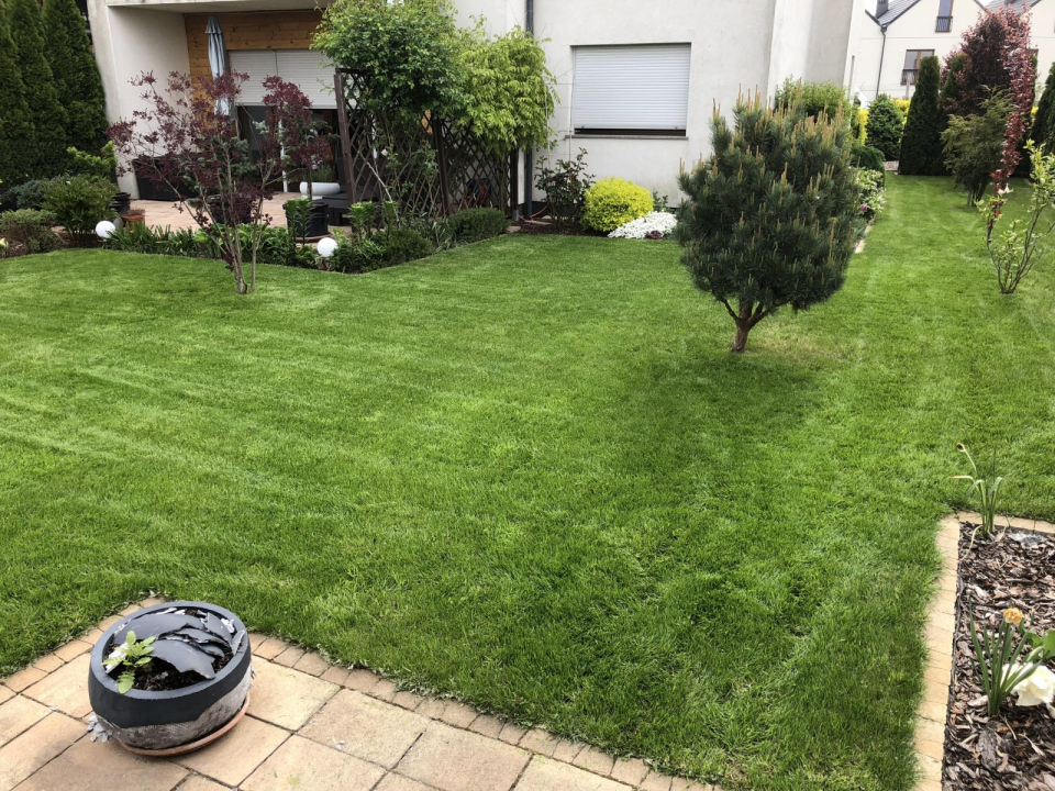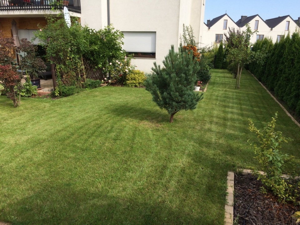 Ogród w Wilczycach Małych wymagał przede wszystkim renowacji trawnika, a także intensywnej pielęgnacji rabat.